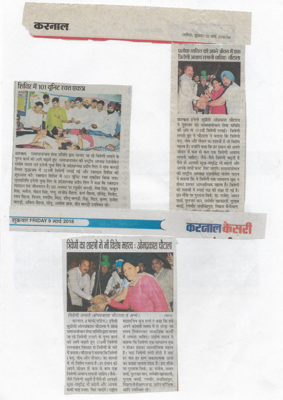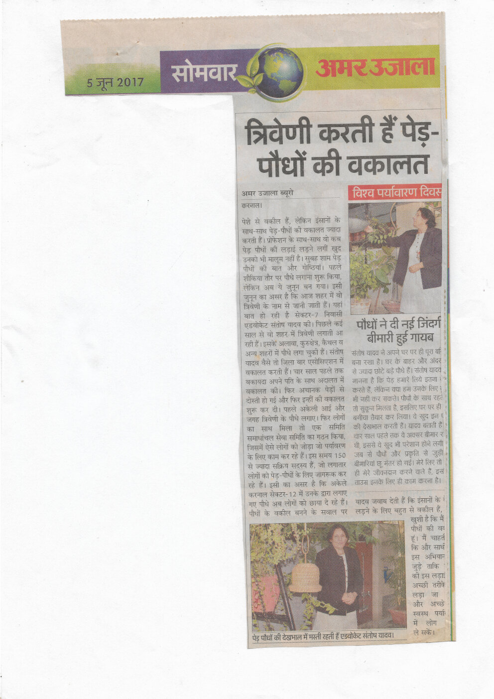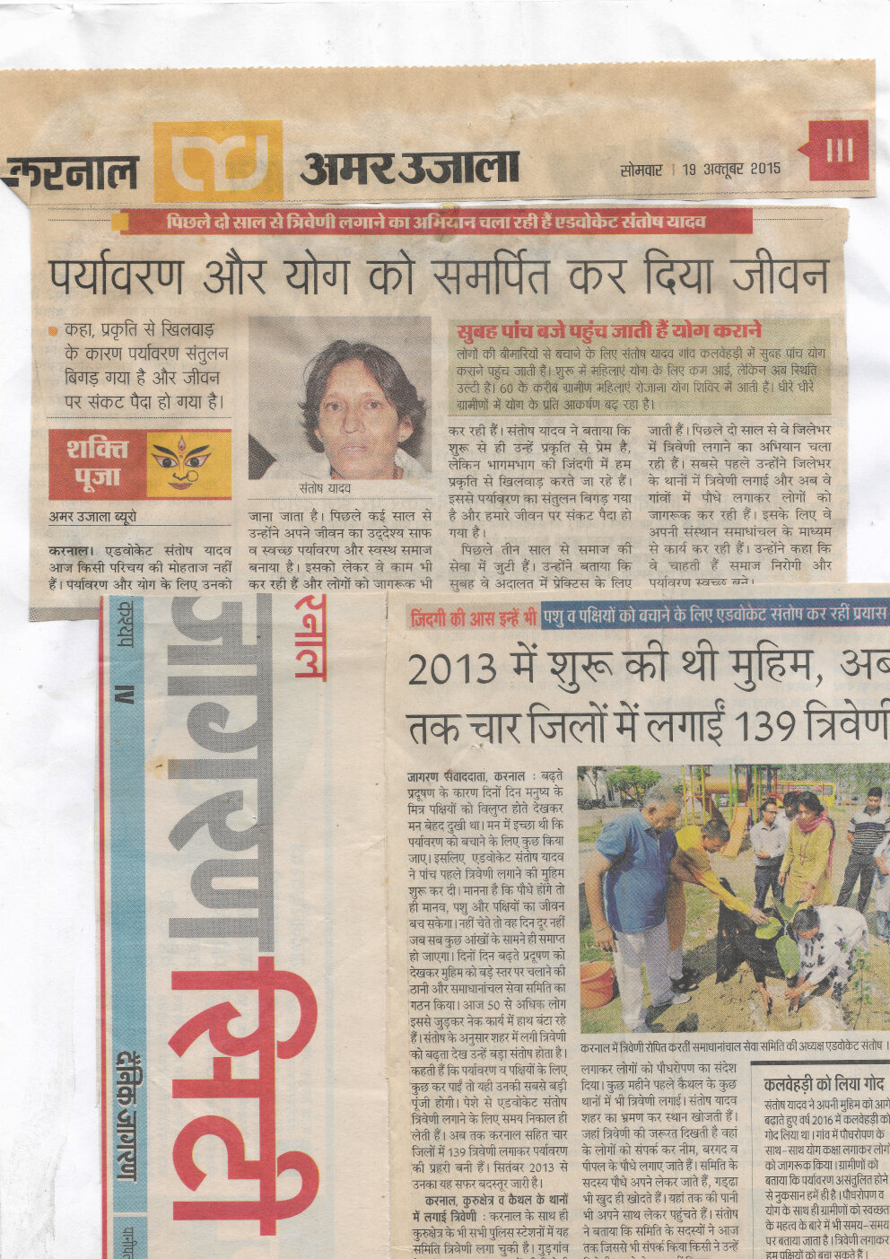 Doing tree plantation, in particular focusing on planting Trivenis (combination of Banyan, Peepal, Neem tree). Through Triveni Plantation NGO.