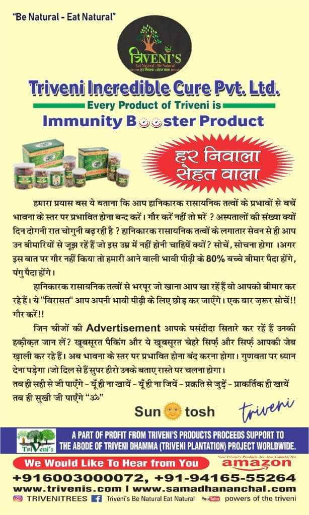Providing great quality natural food and herbal products to support people’s health goals. Through * Triveni Incredible Cure Pvt. Ltd.